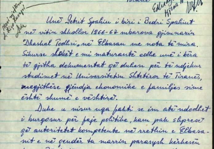 Kur djali i Bedri Spahiut i shkruante Mehmet Shehut