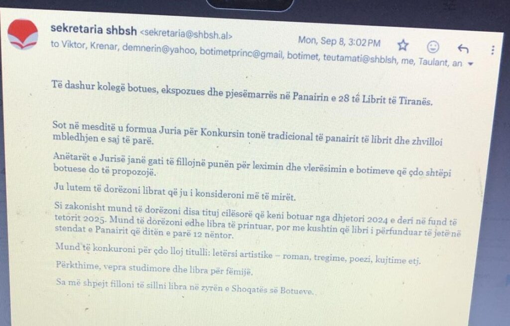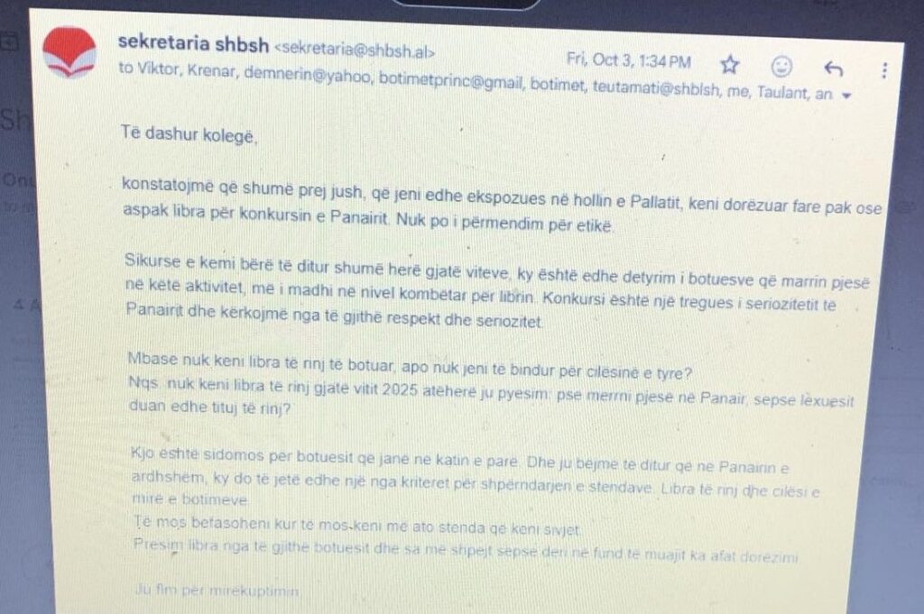 Sa herë vjen e maili nga sekretaria e shoqatës tonë të botuesve për të dërguar sa më shpejt librat për konkursin e panairit të radhës, më trishton shumë.