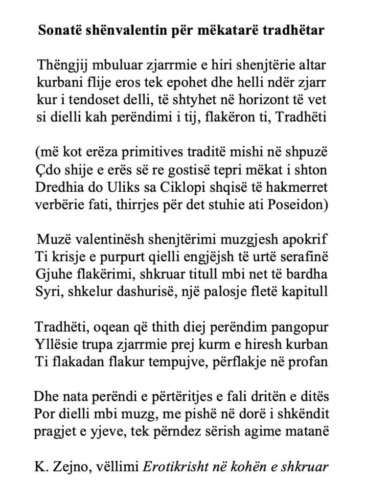 Krenar Zejno: Sonatë shënvalentin për mëkatarë tradhëtarë