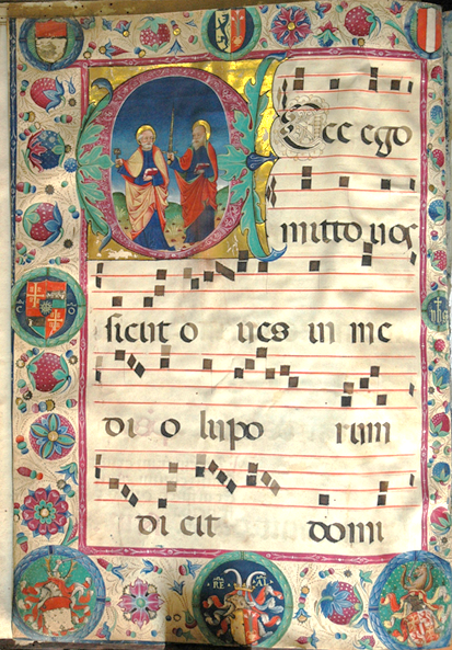 Antiphonarium festivum et commune sanctorum: Miniatura me stemat e markezëve të Monferrato, të mbretit Liutprando dhe të markezes Maria Arianiti Brankoviç Paleologa.