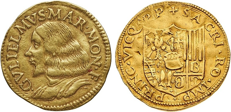 Monedha me vlerë 2 dukate ari, me portretin e Gulielmi IX dhe në faqen e pasme stema heraldike e familjes.