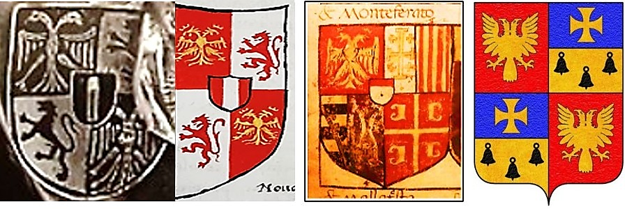 Stema e markezëve Bonifaci III Paleologu dhe Maria Arianiti Brankoviç, u përdor në fund të shekullit XV, kur markezati i Monferrato u ngushtua ndërmjet Savojës dhe dukatit të Milanos dhe u përdorën si mjet për të afirmuar publikisht edhe simbolikisht autonominë e markezatit, madje kjo stemë u trashëgua në shekullin XVI nga djemtë, kësisoj djali i madh Gulielmi IX Paleolog, e përdori të pandryshuar. Gjatë kohës që drejtoi markezatin Gulielmi IX prodhoi monedhën me vlerë dy dukate ari, me portretin e tij në faqen e përparshme dhe stemën heraldike të familjes në faqen e pasme. Kjo monedhë u perdor deri në fillimet e shekullit XVIII. [Biandrate di San Giorgio, Benvenuto, Ragionamento familiare de la origine, tempi et posthumi de li illustrissimi principi marchesi de Monteferrato, ms., Archivio di Stato di Torino, Paesi, Monferrato, Storia e genealogie, m. 1] [Del Carretto Galeotto, Libro de la genealogia et vite de gli illustrissimi principi et excellentissimi marchesi de Monferrato, 1493, Bibliothèque Nationale de France, Paris, ms. it. p. 412.]